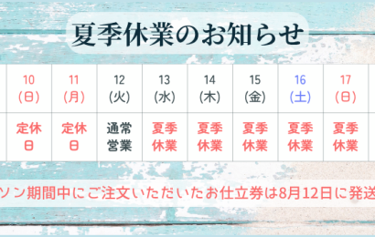 お知らせ すべて おすすめお知らせキャンペーンコラム店長ブログ 2025.08.11お知らせ 2025年夏季休業についてのお知らせ 2025.04.30お知らせ 2025年ゴールデンウィーク休業のお知らせ 2024.12.27お知らせ 冬季休業のお知らせ 2024.08.10お知らせ 2024年 夏季休業について 2024.05.17お知らせ 【300セット限定】手足形がとれる!オリジナルマンスリーカードプレゼント!? 2024.05.02お知らせ 2024年ゴールデンウィーク休業のお知らせ 2024.03.13お知らせ 『Picky’sにてメモリアルショップ for you 写真キーホルダーが紹介されました!』 2023.12.28お知らせ 2023年冬季休業のお知らせ 2023.08.10お知らせ 2023年夏季休業のお知らせ 2023.08.10お知らせ ついに解禁!魔法の手形 足形キット 123 配送目安 00月00日 (月)予定! 特急の場合500円(税別)アップ